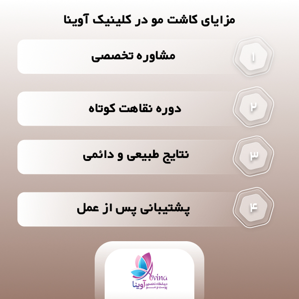کاشت مو نهتنها راهی برای بازگرداندن موهای از دست رفته است بلکه گامی بزرگ در مسیر بازگشت به اعتماد به نفس و زیبایی شماست. در کلینیک آوینا، با استفاده از جدیدترین تکنیکها و تجهیزات، نتایج طبیعی و رضایتبخشی برای شما رقم خواهیم زد. برای شروع مشاوره و دریافت اطلاعات بیشتر، هماکنون با ما تماس بگیرید.